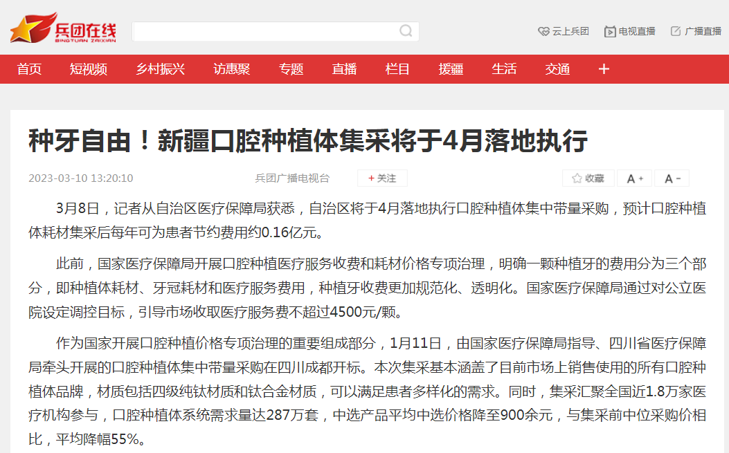 新疆联动国家牙冠竞价挂网,种植牙费用大幅下降